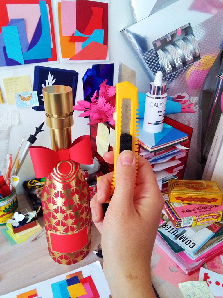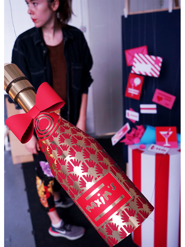 Victoria Bee a choisi de travailler autour de la bouteille de champagne brut Maxim’s dans son édition limitée « Belle époque ». Champagne médaillé en 2019, il est le symbole de l’élégance française. Dans une création réalisée entièrement en papier, Victoria Bee magnifie la bouteille de champagne Maxim’s dans une mise en scène romantique et parisienne. Nous ne pouvons qu’être fiers de cette réalisation !